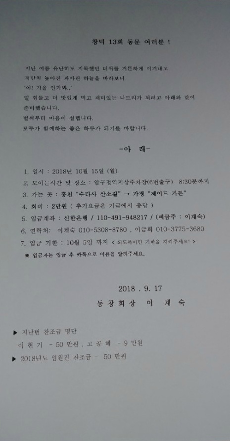 µåµð¾î °¡À»¼Òdz ¾È³»¹®À» ¹ß¼ÛÇÕ´Ï´Ù. ÀÓ¿øÁøµéÀÇ ¼ö°í¿¡ °í¸¶¿î ¸¶À½ÀÌ µì´Ï´Ù. ƯÈ÷ ȸÀå À̰è¼÷Àº À̻縦 ¸çÄ¥ ¾Õ µÎ°í Àִµ¥ ¾È³»¹® ÀÛ¼ºÇÏ´À¶ó°í °í»ý ¸¹¾Ò´ä´Ï´Ù. ¾È³»¹®±îÁö ¿Ã¸®°í º¸´Ï ¸¶À½ÀÌ ¼³·¹°í ¼Õ ²Å¾Æ ¼Òdz³¯ ±â´Ù¸®´ø ÇÐâ½ÃÀý·Î µ¹¾Æ°£ ±âºÐÀÔ´Ï´Ù. |